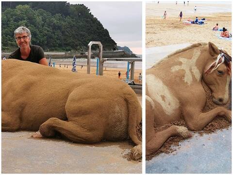 स्पेन: जानवरों की बालू से कलाकृति बनाकर रेत कलाकार लोगों के बीच चर्चा का विषय बने हुए हैं. देखनेवालों को उनकी तस्वीरें हकीकत का रूप लगती हैं. एंदोनी बास्त्रेका समुद्र तट पर एक दशक से अलग-अलग तरह की कलाकृति बालू से तैयार कर रहे हैं.