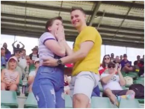 इसके बाद जैसे ही तोता उड़ता है लड़का अपने घुटनों पर बैठकर लड़की को प्रपोज कर देता है. लड़की को सब समझ आ जाता है, वह बेहद खुश होती है और हां में जवाब देती है. इसके बाद स्टेडियम में तालियों का शोर गूंज जाता है.
