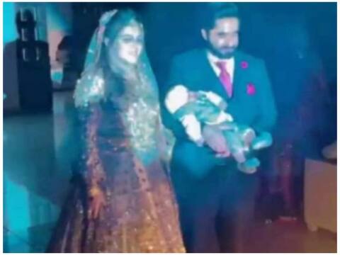 सोशल मीडिया पर इन दिनों एक दूल्हा-दुल्हन की चर्चा कुछ अलग वजह से हो रही है. मामला पाकिस्तान के हाफिजाबाद का है. रिसेप्शन के आयोजन में शामिल जोड़े को देखकर हर कोई हैरान रह गया. 26 वर्षीय पेशे से वकील रयान रउफ शेख और उनकी पत्नी अनमोल का रिसेप्शन 23 मार्च को आयोजित हुआ. रिसेप्शन में दोनों अपनी गोद में दो माह के मासूम को लिए हुए पहुंचे. जोड़े की तस्वीर सोशल मीडिया पर आते ही वायरल हो गई. हर कोई शादी को लेकर अपने-अपने अनुमान लगाने लगा. किसी ने कहा कि मामला समझ से बाहर है और लोगों से गुत्थी सुलझाने में मदद मांगी.