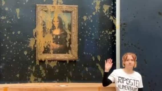 France News: पेरिस के लौर्वे म्यूजियम में क्लाइमेंट चेंज एक्टिविस्ट्स ने मोनालिसा की पेंटिंग को निशाना बनाया. दो महिला एक्टिविस्ट ने संग्रहालय में पेंटिंग के सामने लगे शीशे पर सूप फेंक दिया. दोनों महिलाएं वहां की सिक्योरिटी को चकमा देकर पेंटिंग के करीब पहुंची थीं. इस घटना का वीडियो सामने आया है, जिसमें दो महिलाएं पहले तो थोड़ी दूर से पेंटिंग पर सूप फेकती है और फिर पेंटिंग के करीब पहुंच जाती है.