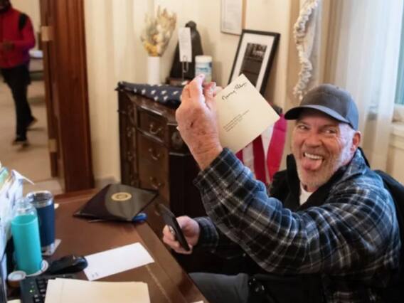 रिचर्ड बार्नेट एक 63 साल के बुजुर्ग हैं, जिन्होंने 6 जनवरी, 2021 को AFP के फोटोग्राफर के सामने US हाउस स्पीकर नैन्सी पेलोसी के ऑफिस में उनके ऑफिस डेस्क के पास जूते उतार दिए और पैर रख कर फोटो क्लिक करवाई थी.