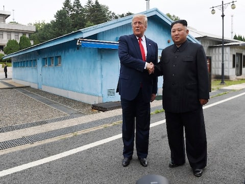 नई दिल्ली: अमेरिका के राष्ट्रपति डोनाल्ड ट्रम्प ने आज उत्तर कोरिया के सुप्रीम लीडर किम जोंग उन से मुलाकात की. यह मुलाकात दक्षिण कोरिया और उत्तर कोरिया को विभाजित करने वाली जगह असैन्य क्षेत्र (डीएमजेड) में हुई. इसी दौरान ट्रम्प ने डीएमजेड में उत्तर और दक्षिण कोरिया को बांटने वाली कंक्रीट की सीमा को पार कर उत्तर कोरिया के क्षेत्र में कदम रखा. यह पहली बार है जब किसी अमेरिकी राष्ट्रपति ने उत्तर कोरिया के क्षेत्र में कदम रखा है.