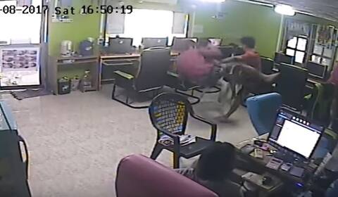 दरअसल वीडियो देखने से लगता है कि ये घटना किसी इंटरनेट कैफे की है जिसमें कुछ लोग बैठ के काम कर रहे हैं. एक युवक कमरे से बाहर निकलने के लिए दरवाजा खोलता है, इस दौरान दरवाजे से लिपटा सांप उस युवक से लिपट जाता है. उस सांप से बचने के लिए युवक जो करता है उसे देख आप अपनी हंसी रोक नहीं पाएंगे.