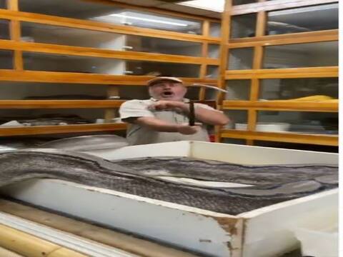 बॉक्स में सुस्त पड़ा सांप, एक्सपर्ट जे ब्रूअर पर कर देता है हमला