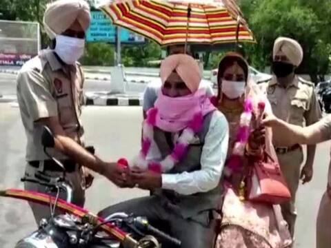 ये वाक्या 24 मई (रविवार) का है. पंजाब के कल्याण में शादी के बंधन में बंधने के बाद युवराज और चांद प्रीत मोटर साइकिल से अपने घर लौट रहे थे, तभी घर के रास्ते में ही दंपति का पुलिस ने स्वागत किया.