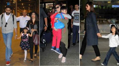 IN PICS: एयरपोर्ट पर बॉलीवुड सितारों के साथ दिखी इनके स्टार किड्स की झलक