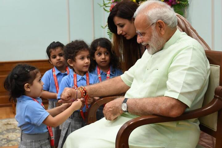 Photos: नन्हें बच्चों ने पीएम मोदी को बांधी राखी, प्रधानमंत्री ने दिया आशीर्वाद