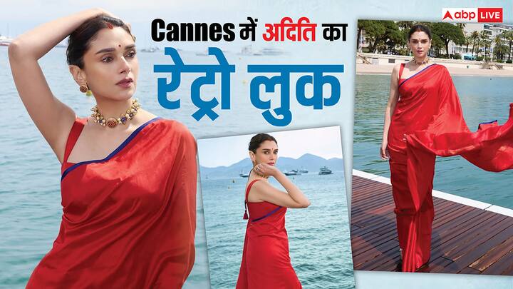 कान्स के लिए इस बार अदिति राव हैदरी ने रेट्रो लुक चुना. वे रेड कलर की प्लेन साड़ी में दिखाई दीं.