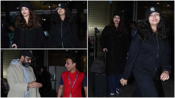 ऐश्वर्या राय और आराध्या बच्चन ने की ब्लैक में ट्विनिंग, अभिषेक बच्चन भी एयरपोर्ट पर आए साथ नजर