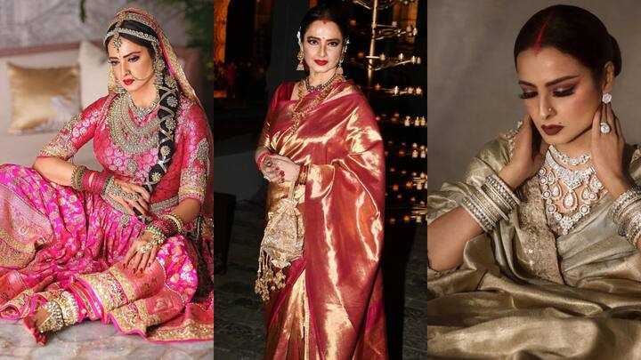 Rekha Iconic Looks: बॉलीवुड की जानी-मानी एक्ट्रेस रेखा आज भी अपने शाही अंदाज और खूबसूरती के लिए जानी जाती हैं, इनका अंदाज आज भी लोगों के दिलों पर राज करता है.