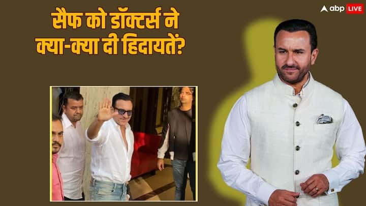 Saif Ali Khan: पांच दिन अस्पताल में भर्ती रहने के बाद सैफ अली खान बीते दिन अस्पताल से घर लौट आए. सैफ की हालत अब पहले से बेहतर है. एक्टर को डॉक्टर्स ने कई सलाह दी हैं.