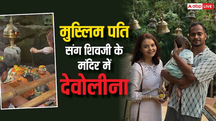 एक्ट्रेस मुस्लिम पति को लेकर शिव मंदिर गई हैं. देवोलीना ने मंदिर के कई फोटोज शेयर किए हैं.