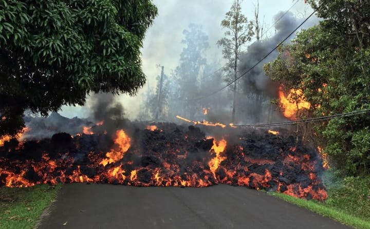 ये एक्टिव वोलकैनो अमेरिका के हवाई द्वीप में मौजूद किलाएवा ज्वालामुखी है जो हाल ही में फट गया और उससे लावा बहने लगा. फोटोः एपी एजेंसी