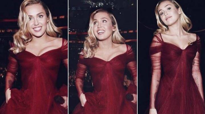 ग्रैमी 2018: मरून वनपीस में पहुंचीं माइली सायरस
