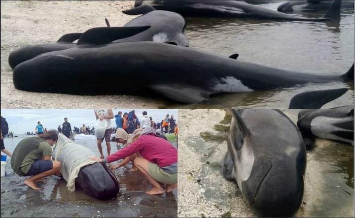 न्यूजीलैंड: समंदर की तेज लहरों में बह कर किनारे पहुंची 400 व्हेल मछलियां, 300 से ज्यादा की मौत