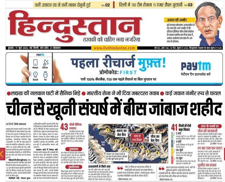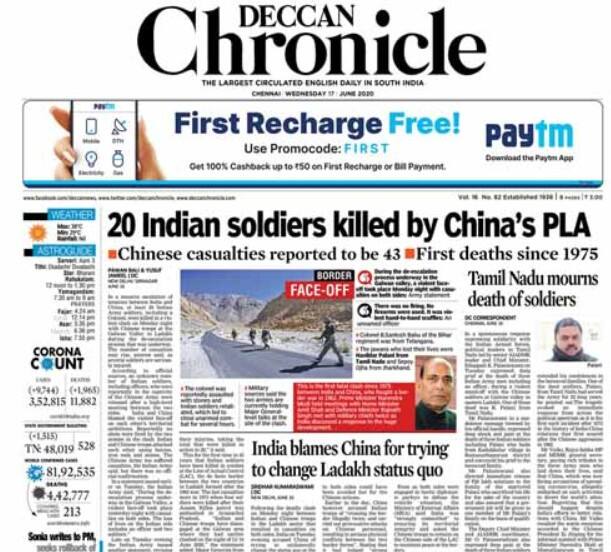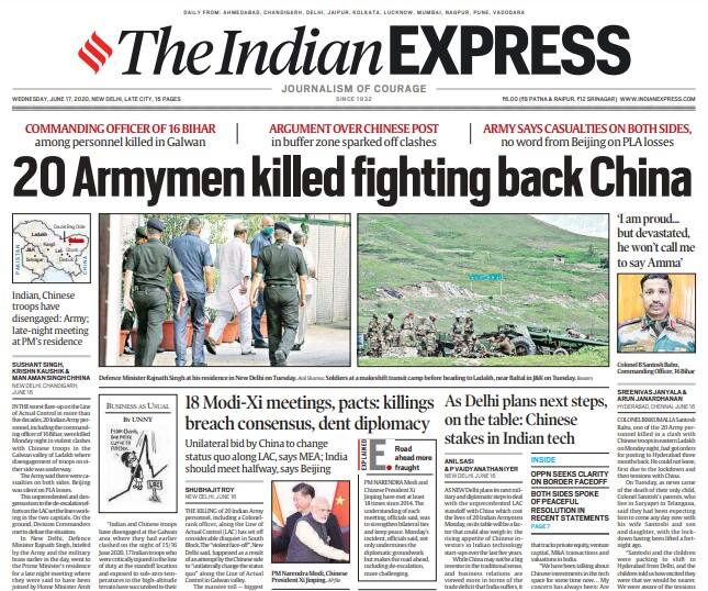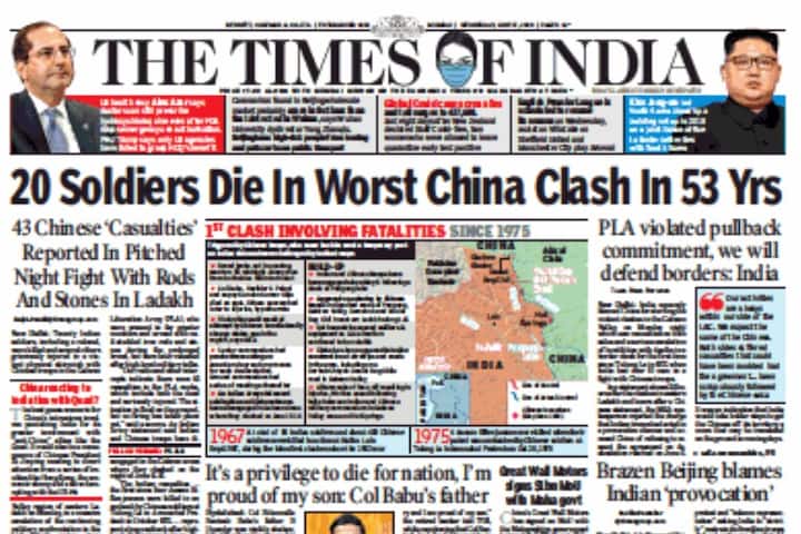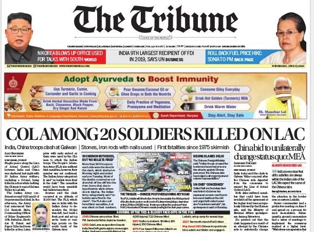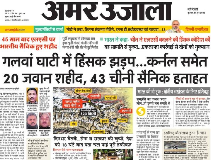 भारत-चीन विवाद: जानें गलवान घाटी की घटना को देश के प्रमुख अखबारों ने कैसे दिखाया है, देखें तस्वीरें