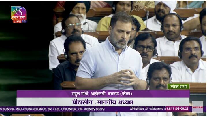 संसद में मोदी सरकार के खिलाए लाए गए अविश्वास प्रस्ताव पर चर्चा चल रही है. अविश्वास प्रस्ताव पर चल रही चर्चा के दौरान कांग्रेस नेता राहुल गांधी ने 9 अगस्त को दो महिलाओं की आपबीती शेयर करते हुए कहा कि बीजेपी की राजनीति ने 'मणिपुर में भारत का कत्ल' किया है.