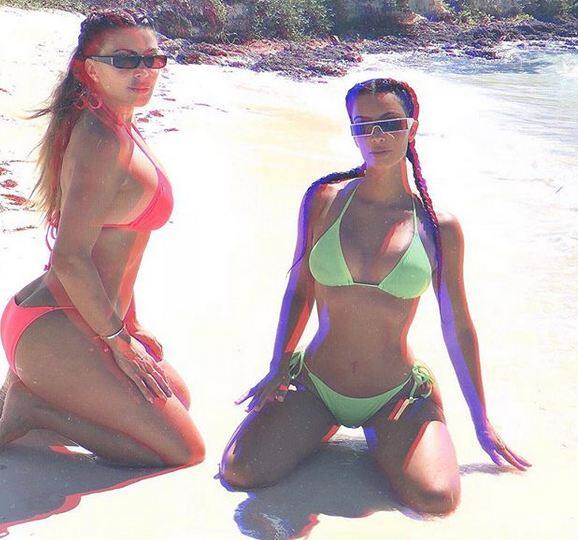 किम ने ये तस्वीरें अपनी बहन कॉर्टनी के साथ पोस्ट की हैं. कॉर्टनी रेड बिकिनी में दिखाई दे रही है. फोटोः इंस्टाग्राम