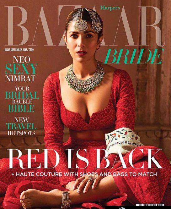 एयरलिफ्ट और लंचबॉक्स जैसी फिल्मों में सादगी वाले किरदार निभाकर निमरत कौर फैंस का दिल जीत चुकी हैं. फिलहाल निमरत एक मैगजीन के कवर में जगह बनाकर चर्चाओं में बनी हुयी हैं. इस कवर फोटो में वे दुल्हन के परिधान में नजर आ रही हैं.