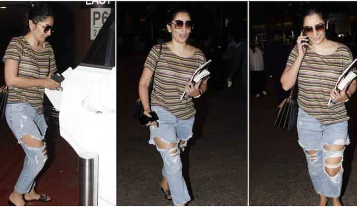 रग्ड जींस और टीशर्ट में एयरपोर्ट पर पर नज़र आईं मान्यता दत्त