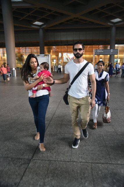 मीरा और शाहिद के साथ उनकी बेटी मीशा भी एयरपोर्ट पर कैमरे में कैद हुईं.