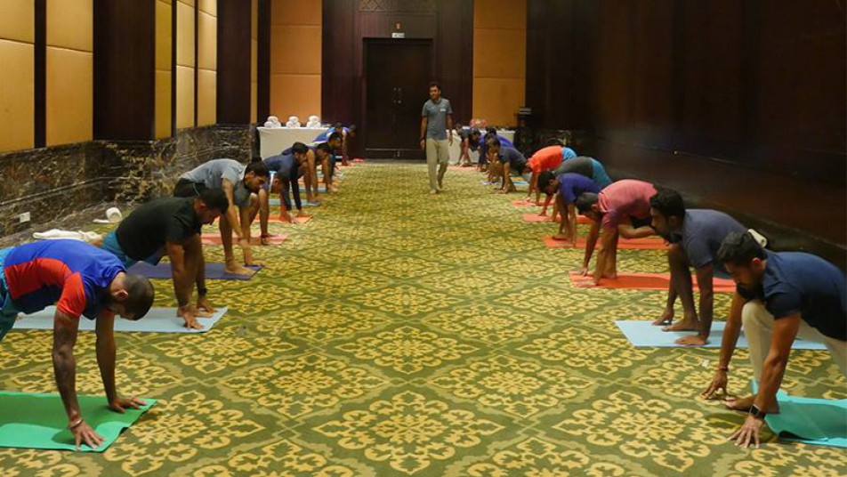 इस कड़ी में आज प्रेक्टिस सेशन के तीसरे दिन भारतीय खिलाड़ियों ने योगा से अपने दिन की शुरूआत की. जिसकी तस्वीर खुद भारतीय क्रिकेट टीम के फेसबुक पेज पर की गई.