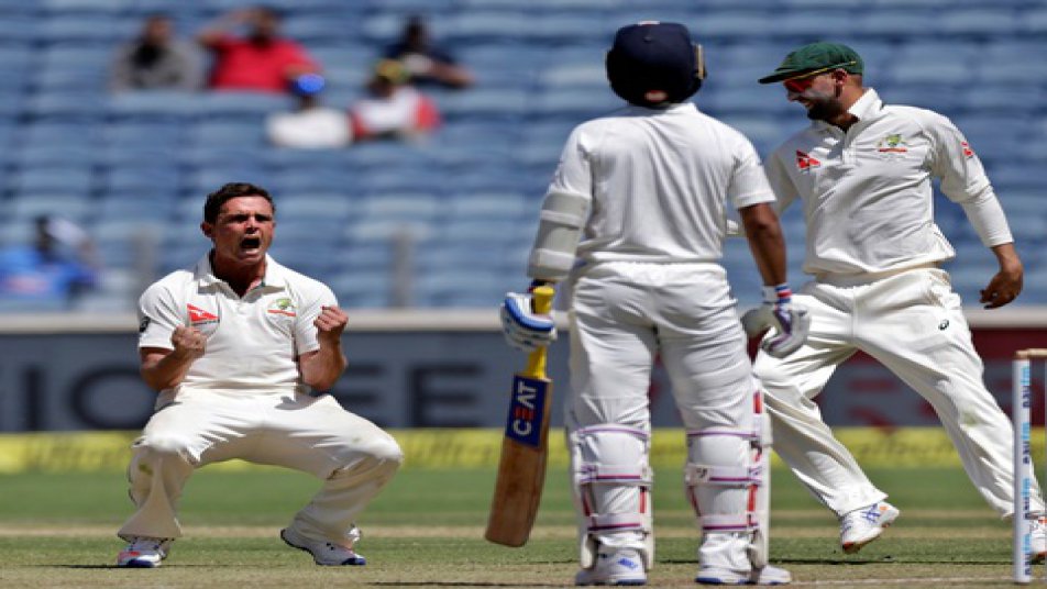 स्टीव ओकीफ (6/35) के बेहतरीन प्रदर्शन की बदौलत आस्ट्रेलिया क्रिकेट टीम ने महाराष्ट्र क्रिकेट संघ स्टेडियम में जारी पहले टेस्ट मैच के दूसरे दिन शुक्रवार को भारतीय टीम की पहली पारी 105 रनों पर समेट दी. मेहमान टीम ने भारत के खिलाफ अपनी पहली पारी के आधार पर 155 रनों की बढ़त ले ली है.