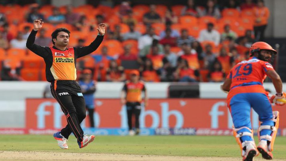 बल्लेबाज़ों को चकमा देते हुए राशिद खान ने इस पारी में 3 बल्लेबाज़ों को पगबधा(LBW) आउट किया. जो कि एक रिकॉर्ड है, आईपीएल के इतिहास में कभी भी कोई गेंदबाज़ 3 बल्लेबाज़ों को पगबधा आउट नहीं कर पाया. तस्वीर सौजन्य: BCCI