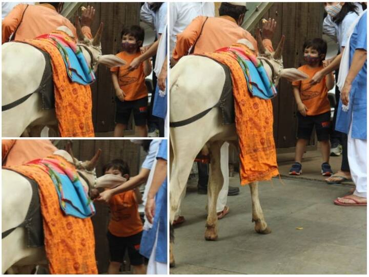 In Pics: गौ सेवा करते तैमूर अली खान की सामने आईं बेहद क्यूट तस्वीरें, घर के बाहर खिलाया चारा