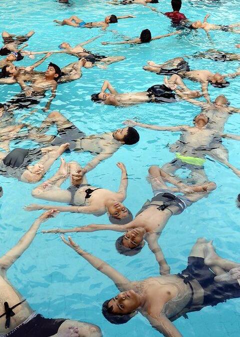 IN PICS: राजस्थान में लोगों ने किया स्विमिंग पूल के अंदर योग!