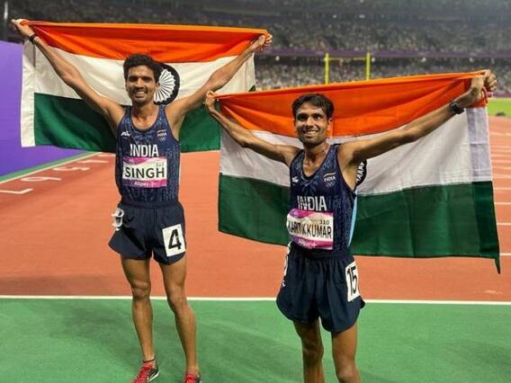Asian Games 2023: चीन के हांगझाऊ शहर में चल रहे 19वें एशियन गेम्स में भारत ने एथलेटिक्स में सातवें दिन पुरुषों की 10 हजार मीटर रेस इवेंट में सिल्वर और ब्रॉन्ज दोनों ही मेडल पर अपना कब्जा किया है. भारत की तरफ से इस इवेंट में हिस्सा ले रहे कार्तिक कुमार ने 28:15:38 की टाइमिंग के साथ सिल्वर मेडल जीता वहीं गुलवीर ने 28:17:21 की टाइमिंग के साथ ब्रॉन्ज मेडल पर कब्जा किया. भारत का एथलेटिक्स यानी ट्रैक एंड फील्ड में यह इस एशियन गेम्स में तीसरा मेडल है. इससे पहले छठे दिन महिलाओं के शॉटपुट इवेंट में किरण बालियान ने ब्रॉन्ज मेडल जीता था.