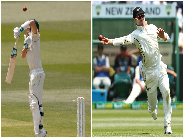 ऑस्ट्रेलिया और न्यूजीलैंड के बीच बॉक्सिंग डे टेस्ट का दूसरा दिन मेजबान टीम के नाम रहा. इस दौरान स्मिथ और ट्रेविस हेड टीम को बड़े स्कोर तक लेकर गए लेकिन तभी स्मिथ आउट हो गए. स्मिथ को आउट करने के लिए गेंदबाज को एक बाउंसर फेंकना पड़ा तो वहीं फील्डर को दो उंगली से कैच लेकर इस खिलाड़ी को पवेलियन भेजना पड़ा. न्यूजीलैंड के पेसर नील वैगनर ने स्मिथ को सीधे बाउंसर मारा जहां वो कंफ्यूज हो गए और सीधे स्लिप को कैच दे बैठे. इस बीच हेनरी निकोल्स का कैच दूसरे दिन पूरी तरह छाया रहा. निकोल्स ने पूरी कोशिश करते हुए स्मिथ का कैच अपनी दो उंगलियों में फंसा लिया. इस दौरान उन्होंने अपने आप को काफी स्ट्रेच किया. स्मिथ जिस तरह से बल्लेबाजी कर रहे थे. उनकी पूरी कोशिश थी की वो इस दौरान टेस्ट में अपना 27वां टेस्ट शतक लगाए. लेकिन वैगनर ने उन्हें 85 रनों पर पवेलियन भेज दिया. इसके बाद आईसीसी ने ट्विटर पर फैंस से पूछा कि आप इस कैच को 10 में से कितने अंक देना चाहेंगे? बता दें कि इसके बाद कई यूजर्स ने ट्विटर पर इसका जवाब दिया और निकोल्स की जमकर तारीफ भी की. न्यूजीलैंड के गेंदबाज स्मिथ को आउट करने के लिए लगातार कोशिश कर रहे थे. जिससे रन रेट तो कम था लेकिन वो विकेट नहीं ले पा रहे थे. दूसरे दिन का खेल खत्म हो चुका है और यहां ऑस्ट्रेलिया ने पहली पारी में जहां 467 रन बनाए. इस दौरान ट्रेविस हेड ने सबसे ज्यादा 114 रनों की पारी खेली. ऐसे में चौथे दिन का खेल खत्म होने तक न्यूजीलैंड ने 2 विकेट के नुकसान पर 44 रन बना लिए हैं. न्यूजीलैंड अभी भी 423 रन पीछे है.