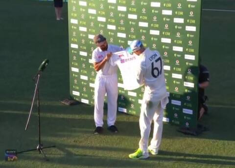 कप्तान रहाणे ने अपना 100वां मैच खेल रहे ऑस्ट्रेलियाई गेंदबाद नेथन लायन को एक खास तोहफा दिया. कप्तान रहाणे ने मैच के बाद प्रजेंटेशन सेरेमनी के दौरान नेथन लाइन को टीम इंडिया की एक जर्सी तोहफे में दी. इस जर्सी पर कप्तान रहाणे के ऑटोग्राफ भी थे. रहाणे के इस खेल भावना से भरे कदम की जमकर तारीफ हो रही है.
