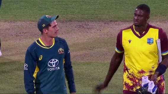 AUS vs WI 1st T20I Full Highlights: ऑस्ट्रेलिया ने वेस्टइंडीज़ को पहले टी20 में 11 रनों से शिकस्त दी. मुकाबला भले ही ऑस्ट्रेलिया ने जीता, लेकिन क्रिकेट फैंस का दिल वेस्टइंडीज़ ने जीता. 214 रनों के लक्ष्य का पीछा करते हुए वेस्टइंडीज़ ने कंगारू फैंस की सांसें अटका दी थीं. नंबर नौ पर बैटिंग के लिए उतरे जेसन होल्डर ने 15 गेंदों में 226.67 के स्ट्राइक रेट से बैटिंग कर 34* रन बना डाले. एक वक़्त ऐसा लगाने लगा कि अब वेस्टइंडीज़ इस मुकाबले को जीत लेगी, लेकिन अंत में उन्हें हार से ही संतुष्ट होना पड़ा.