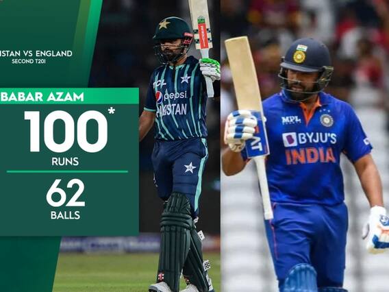 Babar Azam T20I Records: पाकिस्तान ने कराची में खेले गए टी20 सीरीज के दूसरे मैच में इंग्लैंड को 10 विकेट से हरा दिया. इंग्लैंड ने पहले बैटिंग करते हुए 200 रनों का लक्ष्य दिया. इसके जवाब में कप्तान बाबर आजम और मोहम्मद रिजवान ने तूफानी पारी खेलकर टीम को जीत दिला दी. बाबर ने नाबाद 110 रन की शतकीय पारी खेली. इस शतक के साथ ही बाबर ने टी20 में एक खास रिकॉर्ड बनाया और भारतीय कप्तान रोहित शर्मा की बराबरी कर ली.