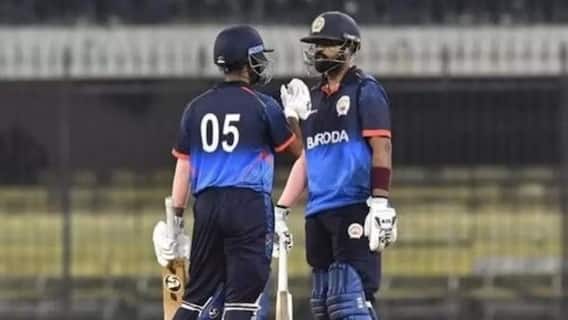 इस मैच में बड़ौदा ने पहले खेलते हुए 349 रन बनाए. पारी की शुरुआत ही तूफानी अंदाज में हुई क्योंकि शास्वत रावत और अभिमन्यू सिंह ने मिलकर 5 ओवर में ही टीम का स्कोर 92 रन पर पहुंचा दिया था. शास्वत और 43 और अभिमन्यू ने तेजतर्रार अंदाज में 53 रन बनाए. यहां से भानू पानिया का जादू फैंस के सिर चढ़कर बोला क्योंकि उन्होंने 51 गेंद में 134 रनों की नाबाद पारी खेली. उन्होंने अपनी पारी में 5 चौके और 15 सिक्स लगाए. उनके अलावा विष्णु सोलंकी ने भी तूफानी पारी खेलते हुए 16 गेंद में 50 रन बनाए.