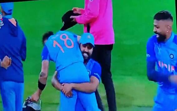 मैच जीतने के बाद भारतीय टीम के कप्तान रोहित शर्मा भागकर ग्राउंड पर आए और उन्होंने विराट कोहली को अपनी गोद में उठा लिया. रोहित के इस जेस्चर ने सभी का दिल जीता. रोहित शर्मा मैच खत्म होने के बाद काफी शुख दिखाई दिए. रोहित के कोहली को गोद में उठाने के बाद एक वीडियो सोशल मीडिया पर तेज़ी से वायरल हो रहा है, जिसमें आप देख सकते हैं कि इससे पहले विराट कोहली को कितने भारतीय दिग्गज गोद में उठा चुके हैं.