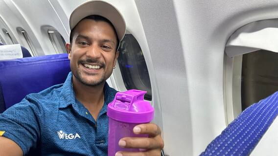 Mayank Agarwal With Water Bottle: मयंक अग्रवाल को पिछले महीने जनवरी में काफी मुश्किलों का सामना करना पड़ा था, जब फ्लाइट में अचानक उनकी तीबयत बिगड़ गई थी. मयंक की तबीयत इनती खराब हो गई थी कि उन्हें ICU में भर्ती करवाना पड़ा था. अब सावधानी दिखाते हुए मयंक फ्लाइट में अपनी वाटर बोतल के साथ पहुंचे, जिसकी तस्वीर उन्होंने सोशल मीडिया के ज़रिए शेयर की.
