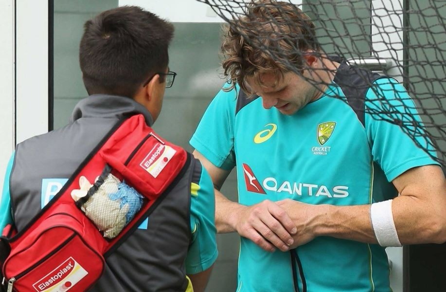 स्मिथ आज मेलबर्न क्रिकेट ग्राउंड के नेट्स पर एकतरफ खड़े थे जब कैमरन बेनक्रॉफ्ट का शॉट उनके हाथ में आकर लगा जिससे वह दर्द में दिखे.