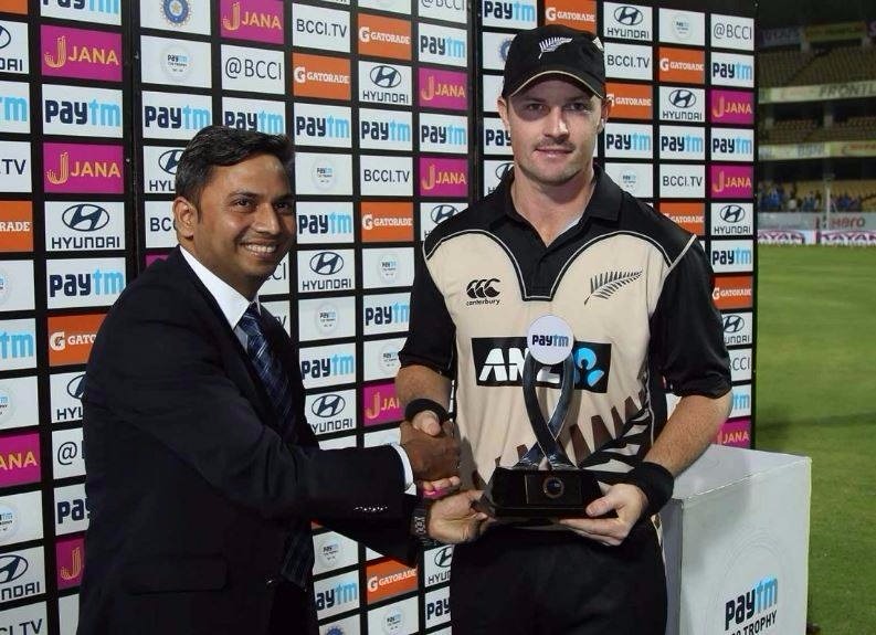 बायें हाथ के तेज गेंदबाज ट्रेंट बोल्ट ने सलामी बल्लेबाजों शिखर धवन और रोहित शर्मा को दूसरे ओवर में ही पवेलियन भेजा दिया जिससे मेजबान टीम ने 197 रन के लक्ष्य का पीछा करते हुए 11 रन पर ही दो विकेट गंवा दिए.