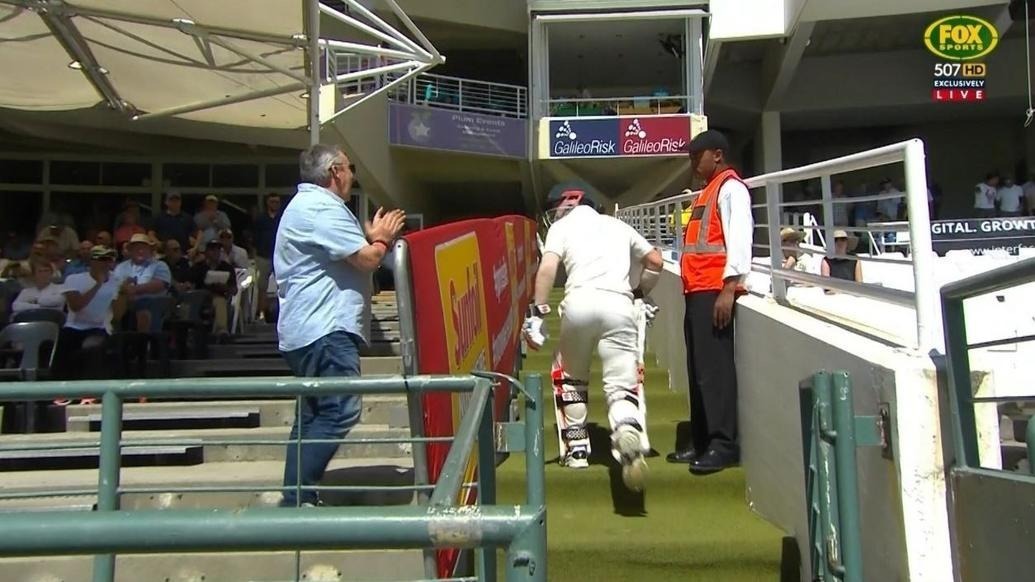 इसके बाद आस्ट्रेलिया टीम के सुरक्षा मैनेजर फ्रैंक दिमासी नीचे आए और उन्होंने सुरक्षा गार्ड तथा दर्शक से बात की.