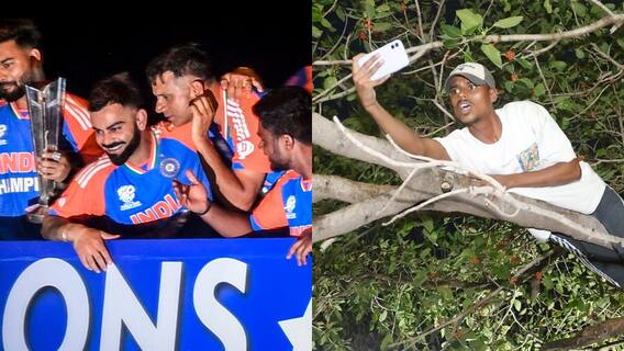 Fan On Tree For Virat Kohli: टीम इंडिया ने 04 जुलाई, गुरुवार मुंबई में 'विक्ट्री परेड' की थी, जिसे देखने के लिए लाखों फैंस इकट्ठी हुए थे. मुंबई की मरीन ड्राइव पर फैंस की भीड़ ने पूरी तरह कब्ज़ा कर लिया था. फैंस बस किसी भी तरह अपने हीरो को देखना चाहते थे. जिस फैन को चैंपियंस को देखने के लिए जहां जगह मिली, वो वहां खड़ा हो गया. इन सबके बीच एक फैन 'विक्ट्री परेड' देखने के लिए पेड़ पर ही चढ़ गया था. अब फैन ने पेढ़ पर चढ़ने का कनेक्शन विराट कोहली (Virat Kohli) से बताया.