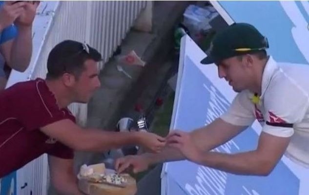 दरअसल, इग्लैंड की दूसरी पारी में मिशेल स्टार्क बॉउंड्री पर फील्डिंग कर रहे थे. उसी दौरान स्टेडियम में मैच देख रहे एक फैन ने उन्हें स्नैक्स खाने का ऑफर दिया. मार्श ने भी अपने उस फैन को निराश नहीं किया और बड़ी शालिनता के साथ उनसे एक स्नैक्स लेकर वापस फील्डिंग करने चले गए.