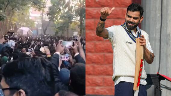 Fan Gather For Virat Kohli: विराट कोहली के फैंस उनकी एक झलक पाने के लिए हमेशा ही बेताब रहते हैं. इस बेताबी का आलम दिल्ली के अरुण जेटली स्टेडियम के बाहर भी देखने को मिला. इस मैदान पर आज यानी 30 जनवरी, गुरुवार से दिल्ली और रेलवे के बीच रणजी ट्रॉफी का मुकाबला खेला जाएगा. मुकाबले में विराट कोहली दिल्ली के लिए खेलते हुए नजर आएंगे. मुकाबला शुरू होने से पहले फैंस स्टेडियम के बाहर कोहली की एक झलक पाने के लिए पहुंच गए. इसके अलावा RCB-RCB नारे भी लगे.