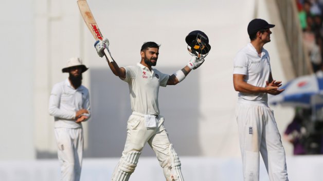 मुंबई: कप्तान विराट कोहली ने एक बार फिर बल्लेबाजी में अपनी बादशाहत साबित करते हुए नाबाद शतक जमाया जिसकी मदद से भारत ने चौथे क्रिकेट टेस्ट के तीसरे दिन आज इंग्लैंड के खिलाफ सात विकेट पर 451 रन बना लिए.
