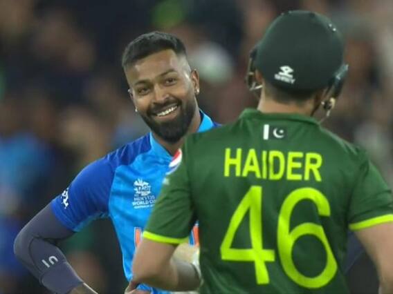 दरअसल, सोशल मीडिया पर वायरल इस वीडियो में भारतीय ऑलराउंडर हार्दिक पांड्या और पाकिस्तान के हैदर अली नजर आ रहे हैं. हार्दिक पांड्या की गेंद पर हैदर अली बड़ा शॉट खेलने के प्रयास में आउट हो गए. जब पाकिस्तानी खिलाड़ी हैदर अली आउट होने के बाद पवैलियन की तरफ जा रहे हैं तो हार्दिक पांड्या उन्हें देखकर हंस रहे हैं. हालांकि, हैदर अली ने हार्दिक पांड्या की इस मुस्कुराहट पर कोई प्रतिक्रिया नहीं दी, वह पवैलियन की तरफ चलते बने. फिलहाल, सोशल मीडिया पर यह वीडियो खूब वायरल हो रहा है. क्रिकेट फैंस इस वीडियो को खूब शेयर कर रहे हैं.