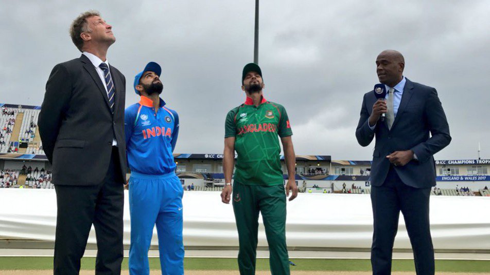 नई दिल्ली/बर्मिंघम: चैम्पियंस ट्रॉफी के दूसरे सेमीफाइनल में आज भारत ने टॉस जीता और बांग्लादेश को बल्लेबाजी के लिए बुलाया है. आपको बता दें कि बांग्लादेश की टीम पहली बार चैम्पियंस ट्रॉफी के सेमीफाइनल में पहुंची हैं.
