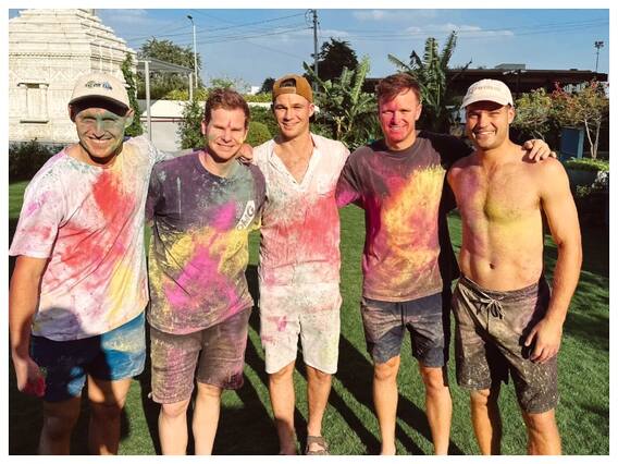 इन तस्वीरें में स्टीव स्मिथ और मार्नस लाबुसेन के साथ-साथ ऑस्ट्रेलियन क्रिकेट टीम के कई खिलाड़ी भी होली खेलते हुए नजर आए. वायरल वीडियो में देखा जा सकता है कि स्टीव स्मिथ मार्नस लाबुसेन के ऊपर रंग फेंकते हुए नजर आ रहे हैं वहीं लाबुसेन उनसे बचने की कोशिश करते हुए दिख रहे हैं. इस तरह से ऑस्ट्रेलिया के अन्य खिलाड़ियों ने भारत के इस खूबसूरत त्योहार का जमकर मजा लिया.