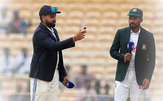 India vs Bangladesh 2nd Test Toss: भारत और बांग्लादेश के बीच दो मैचों की टेस्ट सीरीज का आखिरी टेस्ट मैच आज से शुरू हो गया है. पहला टेस्ट जीतकर भारत सीरीज में 1-0 से आगे है. दूसरा टेस्ट मैच कानपुर के ग्रीन पार्क क्रिकेट स्टेडियम में खेला जा रहा है. इसकी पिच काली मिट्टी से तैयार की गई है. टॉस एक घंटे की देरी से किया गया. भारत ने टॉस जीतकर पहले गेंदबाजी करने का फैसला किया.