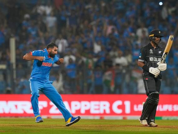 India vs New Zealand World Cup 2023 Semi-Final: भारतीय टीम का वनडे वर्ल्ड कप 2023 का फाइनल खेलना लगभग तय हो गया है. रोहित शर्मा की अगुवाई वाली भारतीय टीम ने न्यज़ीलैंड के खिलाफ मुंबई के वानखेड़े स्टेडियम में खेले जा रहे मुकाबले में पहले बैटिंग में कहर बरपाते हुए 397 रनों का टोटल बोर्ड पर लगाया. फिर लक्ष्य का पीछा करने न्यूज़ीलैंड की टीम पर भारतीय तेज़ गेंदबाज़ मोहम्मद शमी कहर बनकर टूटे.